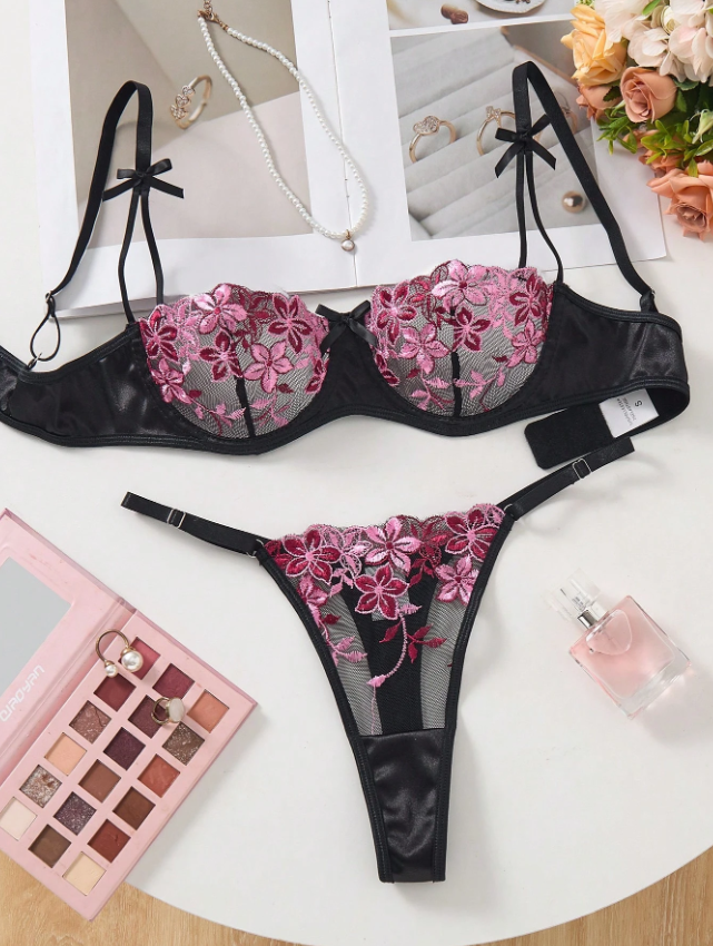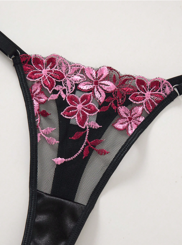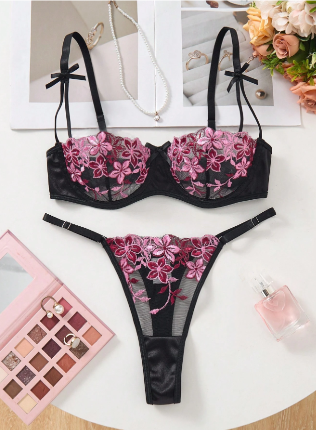 Elige la sofisticación sin esfuerzo con nuestro Conjunto Deisy Negro. Este set de lencería es una declaración de estilo atemporal, fusionando el lujo del encaje con un diseño directo y cautivador. La transparencia del tul se combina con un sutil encaje floral, creando un efecto de tatuaje delicado sobre la piel. Es el conjunto perfecto para la mujer que valora la elegancia y la confianza en cada detalle.